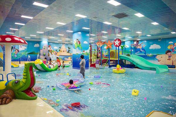 4、游泳區,水深2000px,為保證安全獨立成區,主要提供兒童游泳以及相關的培訓,由專門的工藝軟化,保證兒童游泳的安全性。